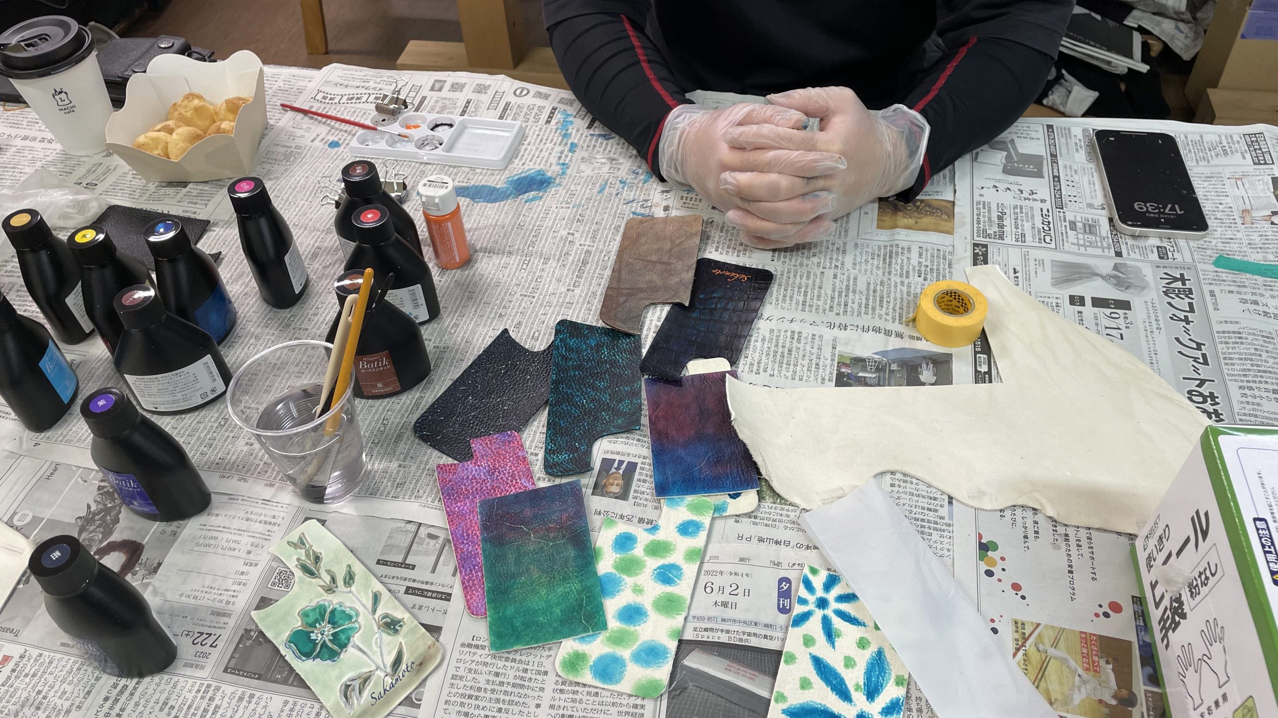 手に色が付かないように手袋はこちらで用意しますが、念の為汚れても良い服装でお越しください。